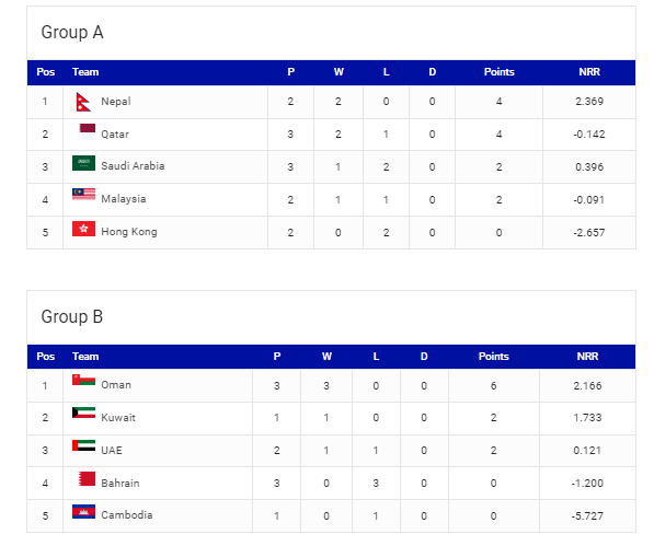 ACC Men’s T20 Premier Cup’s Points table